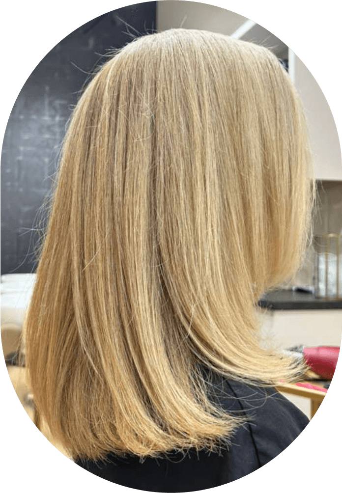 Perfect, radiant dimensional blonde designed for your face shape. Natural sophistication and the freedom of up to 6 months without touch-ups.